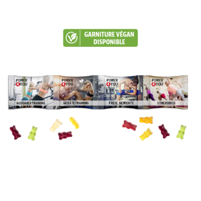 • Tous nos produits / Produits personnalisables / Quadruple sachets gommes de fruits avec 10% de fruits